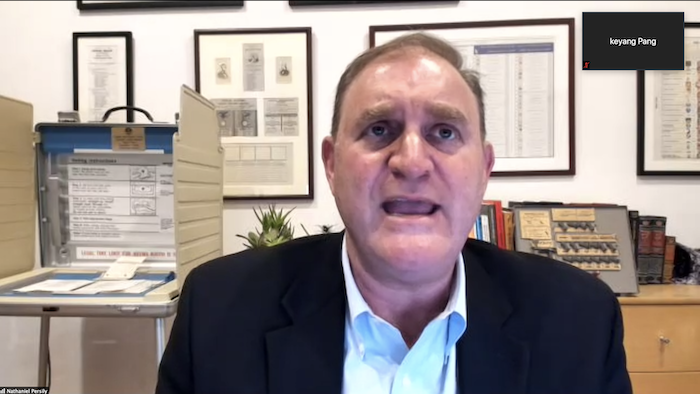 「少数族裔媒体服务中心」负责人寇丝(Sandy Close)、史丹福大学法学院教授佩西利(Nathaniel Persily)和数十位少数族裔媒体工作者出席当天的线上会议。