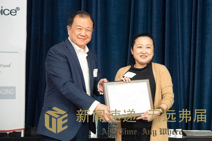 国泰银行总裁兼首席执行长刘昌明为活动赞助商颁感谢状。庞可阳摄