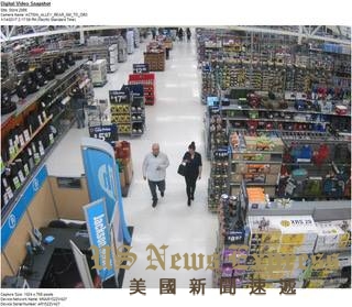 男女嫌犯出现在超市中。