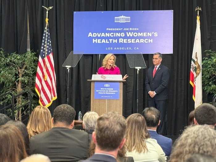 第一夫人吉尔(Jill Biden)本周五(8日)在访问洛杉矶西达赛奈医疗中心(Cedars-Sinai)期间参观了研究实验室并会见了科学家,并强调了白宫关于妇女健康研究的新倡议。