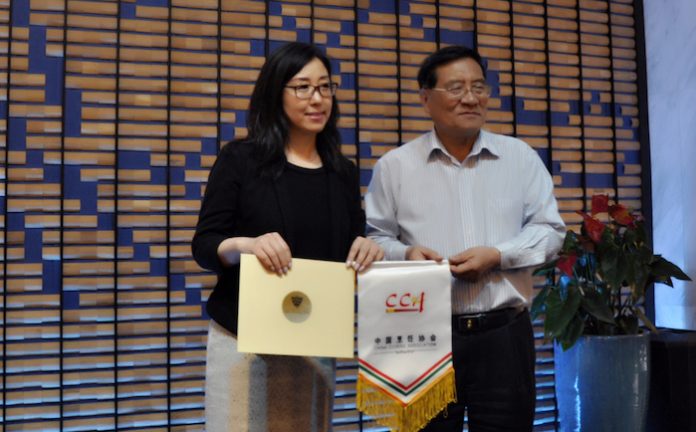 刘茁代表比佛利山市旅游局与中国烹饪协会交换了贺状与锦旗。 宗英摄