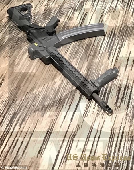 这些图片展示了枪手当晚使用的武器中的两把,它们都是AR-15型号的突击步枪,其中一把被修改成为“全自动”,可以每分钟发射数百枪。此外,这把武器还配有Holographic Sight(全息瞄准镜)和超大弹匣,这意味着枪手在开枪很长时间内无需更换弹匣。