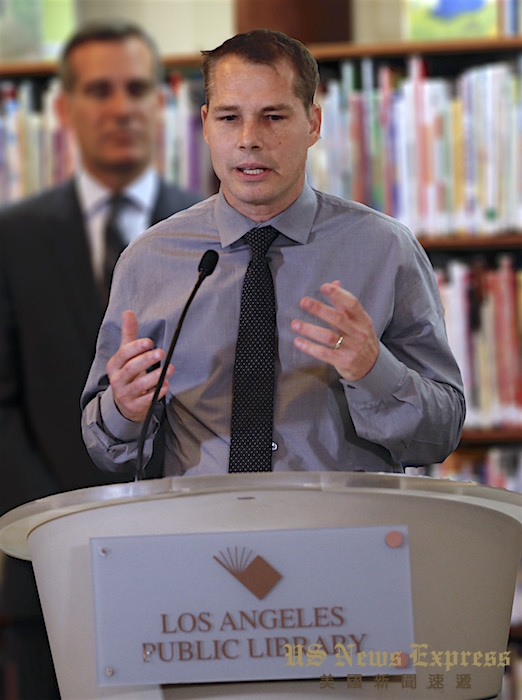 本月19日,洛杉矶市市长贾西提与涂鸦艺术家费尔瑞夫妇在洛杉矶中央图书馆,为这款首次由艺术家设计的限量版借书证揭幕。贾西提介绍,洛杉矶很幸运的拥有全美最好的公立图书馆系统,更曾赢得图书馆届的奥斯卡-“图书馆国家奖章”。洛杉矶公立图书馆不仅提供借书服务,更设有公民入籍服务以及求职帮助区。他认为,图书馆除了体现城市的政策方针外,更代表了城市的核心和灵魂。每位洛杉矶居民都有权利获得教育,享受图书馆的服务。