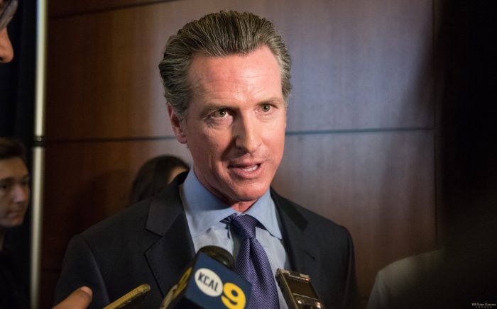 过去八年,纽森是现任州长布朗的副手,在此之前,他曾任旧金山市市长和地区主管。纽森因在2004年担任旧金山市长期间允许向同性伴侣颁发结婚证而在全美出名。纽森承诺在2025年前在加利福尼亚新建350万个新房,以应对经济危机和游民问题。纽森倡导全民医疗保健计划,他希望实现「单一保险人支付制」的健保。纽森支持加州避难州法案,并支持全面移民改革。