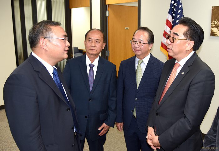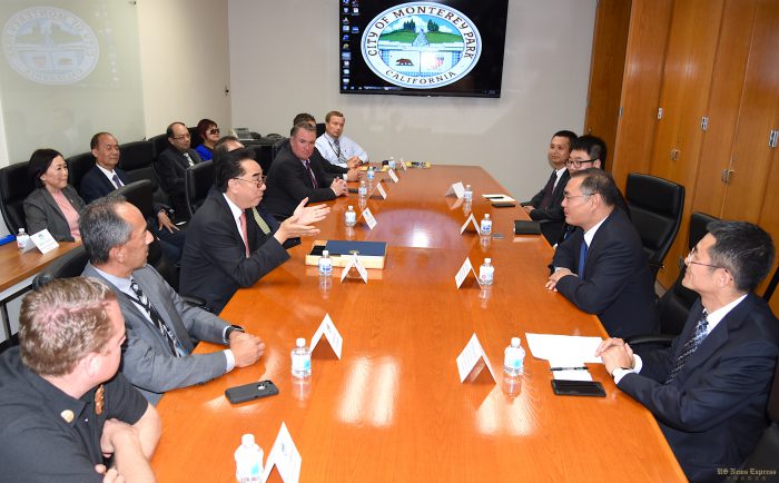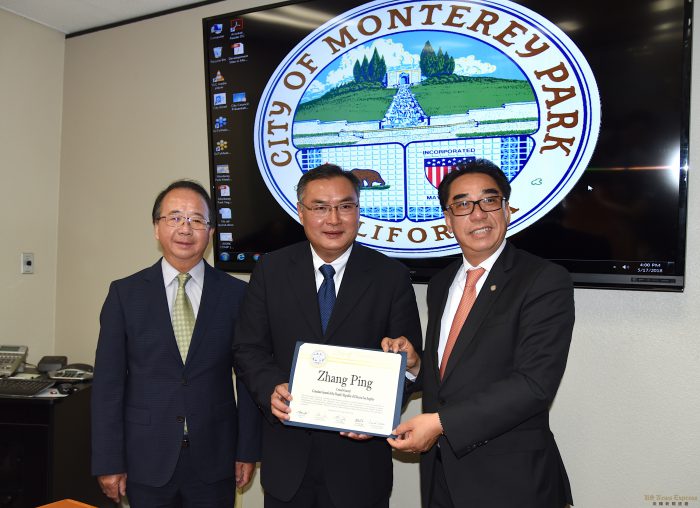 中国驻洛杉矶总领事张平本周拜访洛杉矶知名的华人城市蒙特利公园(Monterey Park 简称蒙市),获得市长林达坚、副市长陈赞新、市经理Ron Bow等市府与各部门负责人的热烈欢迎。