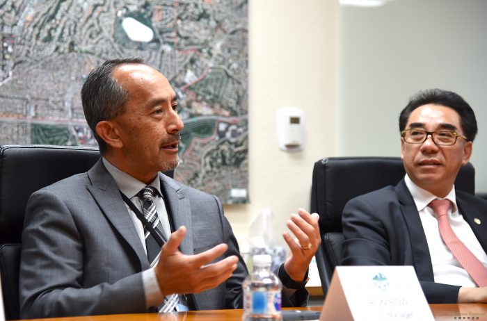 林达坚首先向张平一行介绍了拥有百年历史的蒙市发展,从鲜有移民到今天发展成为全美首个华裔人口过半的城市。在市府和市民的合作努力下,蒙市近来被评为全美最宜居城市第三名。蒙市从未停止过发展的脚步,本月,Costco、Home Depot等大型企业将进驻,更大化的方便市民,也吸引更多人选择来蒙市安居乐业。