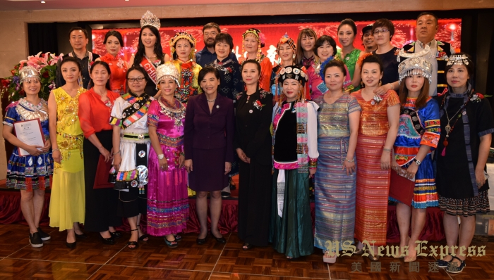 聯邦眾議員趙美心(前排左6)與南加州雲南同鄉會幹部們合影。錢美臻攝