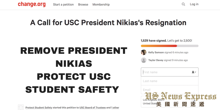 联署中指出,南加大校长无视学生安全,不在乎学校女性安全,因此呼吁学校董事会撤销其校长职务和学校健康系统委员会主席的职位。