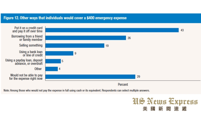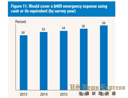 聯邦儲備委員會是從2013年開始進行這份調查,比對2013年統計中,顯示有一半的美國人拿不出400元應急,5年間的統計,這個項目也是持續減少,顯示有越來越多的民眾開始建立個人儲蓄。