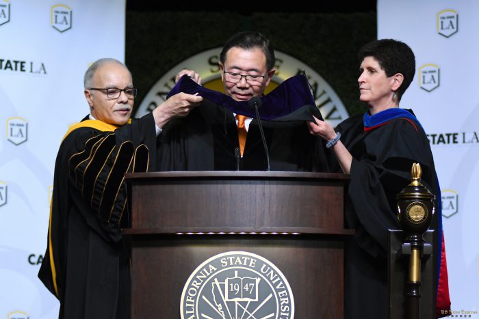 亚美公益促进中心(Asian Americans Advancing Justice)创始人郭志明(Stewart Kwoh)本周受邀到洛杉矶州大(CSULA)的毕业典礼上发表主旨演讲。为了表彰他为亚太裔美国人作出的贡献,学校校董会当天授予郭志明荣誉博士学位。