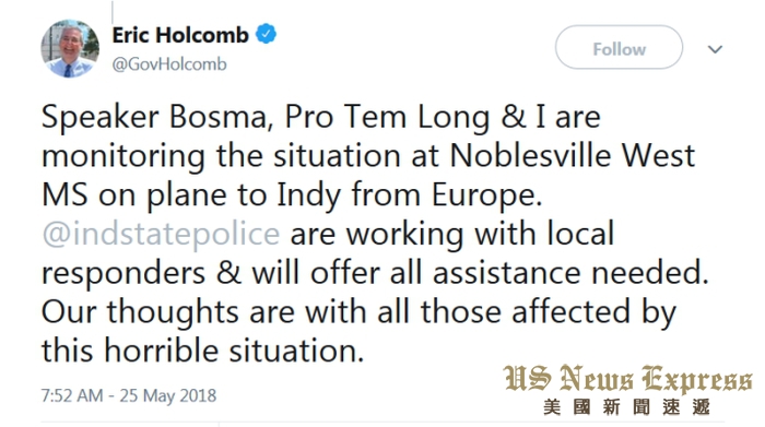 在德州校园枪案一周後,印第安纳州(Indiana)一所中学在5月25日上午传出枪响。警方指出有一名教师和一名学生受伤送医,嫌犯已被拘捕。