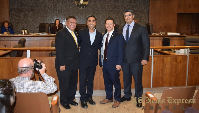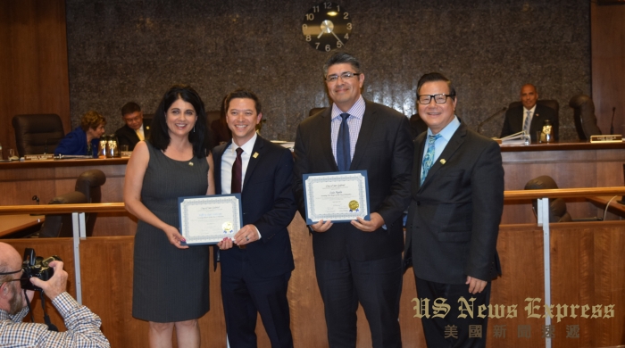 包括聖蓋博市、西柯維納市等多位鄰近城市官員,也出席當晚就職儀式,向新就任的正、副市長表達恭賀之意。
