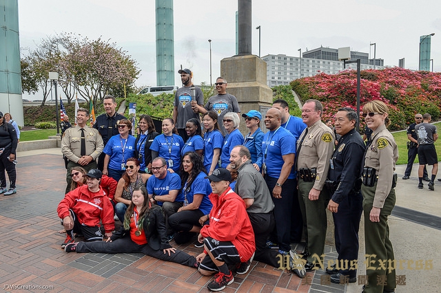 本月29日,洛杉矶机场警察局局长麦格德(David Maggard Jr.),洛杉矶郡警局局长麦克唐纳(Jim McDonnell)、洛杉矶市警局指挥官周宝来等都到场为特奥会的运动健儿们加油打气。