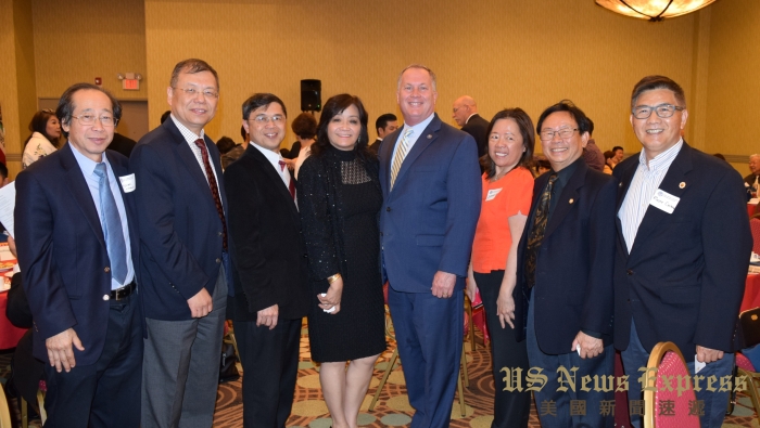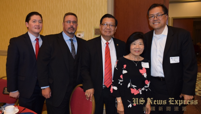 洛縣警長麥克唐納與美國華裔民選官員協會2018-2019理事會成員合影。錢美臻攝