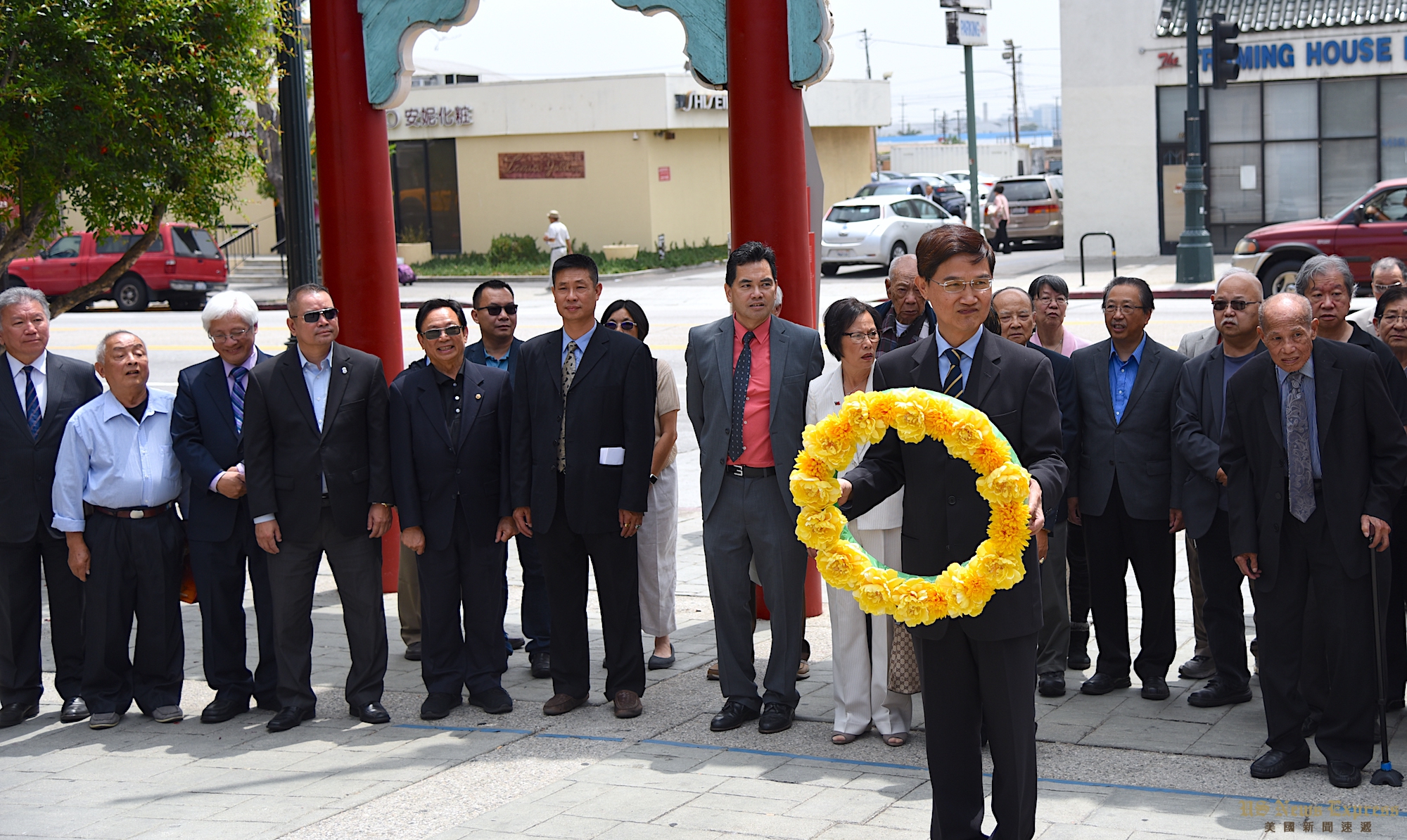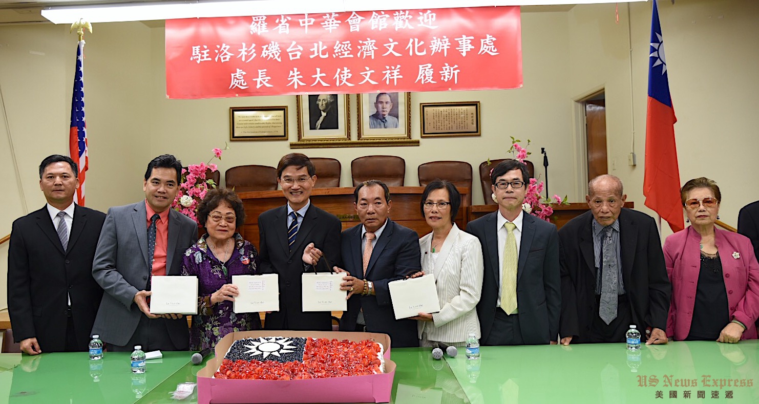 驻洛杉矶台北经济文化办事处新任处长朱文祥6月5日拜访洛杉矶传统侨社。他先到朱沛国堂祭拜后便来到罗省中华会馆,会见元老黄金泉,四大首长及下属27侨团代表。朱文祥随后还前往孙中山铜像献花致敬。