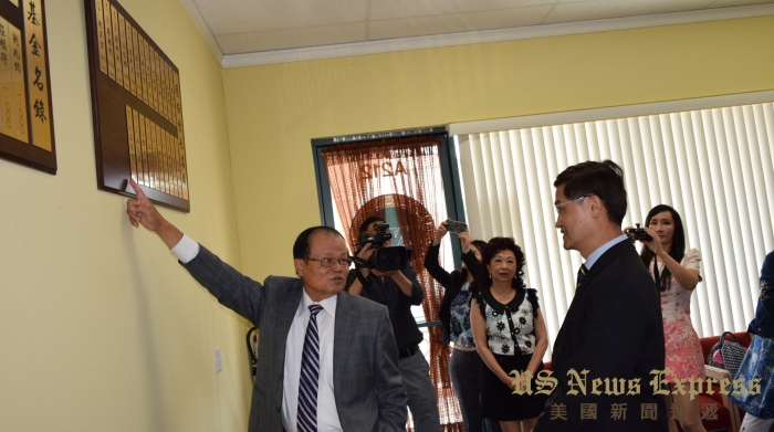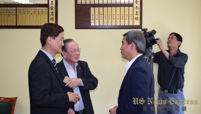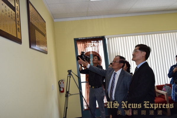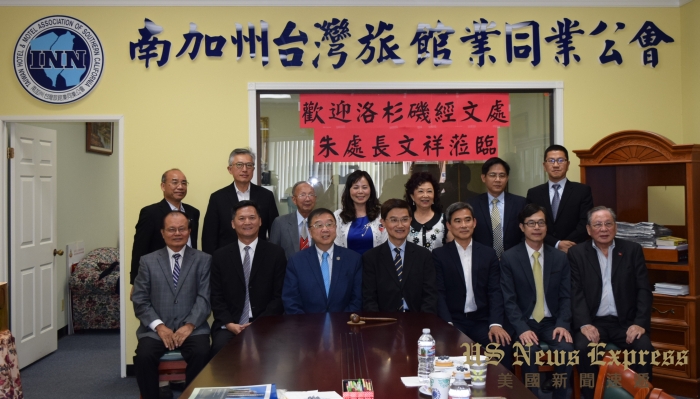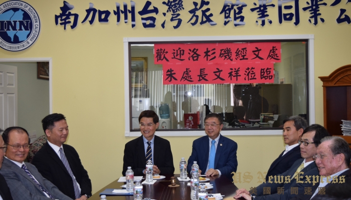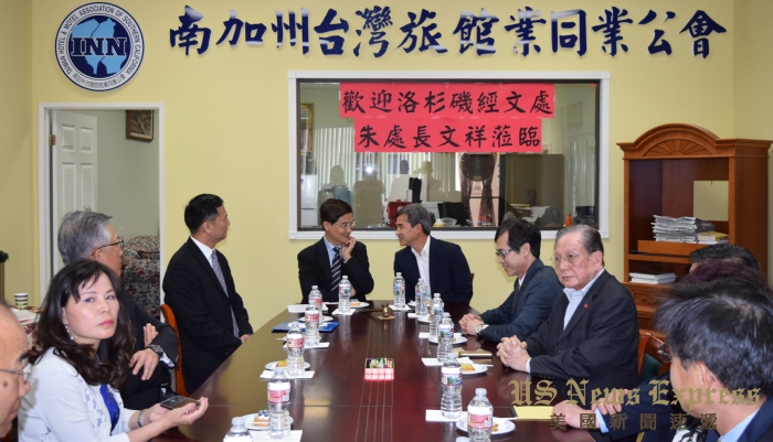 朱文祥在5日下午參訪大洛杉機台灣會館之後,便轉往南加州台灣旅館業同業公會進行拜會,由會長李德揚率多位理事在場相迎。