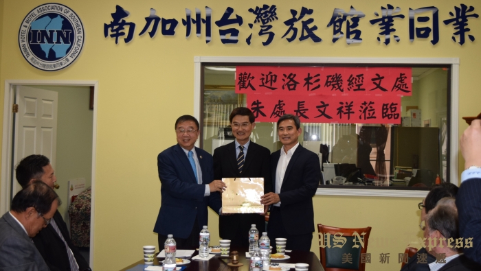 駐洛杉磯台北經濟文化辦事處處長朱文祥,在正式上任第二天(6月5日)下午,拜會了南加州台灣旅館業同業公會,獲得該會會長李德揚與近10位理事、僑領的熱烈歡迎,並約定未來多多「以球會友」,透過相約一起運動健身來增進彼此情誼。