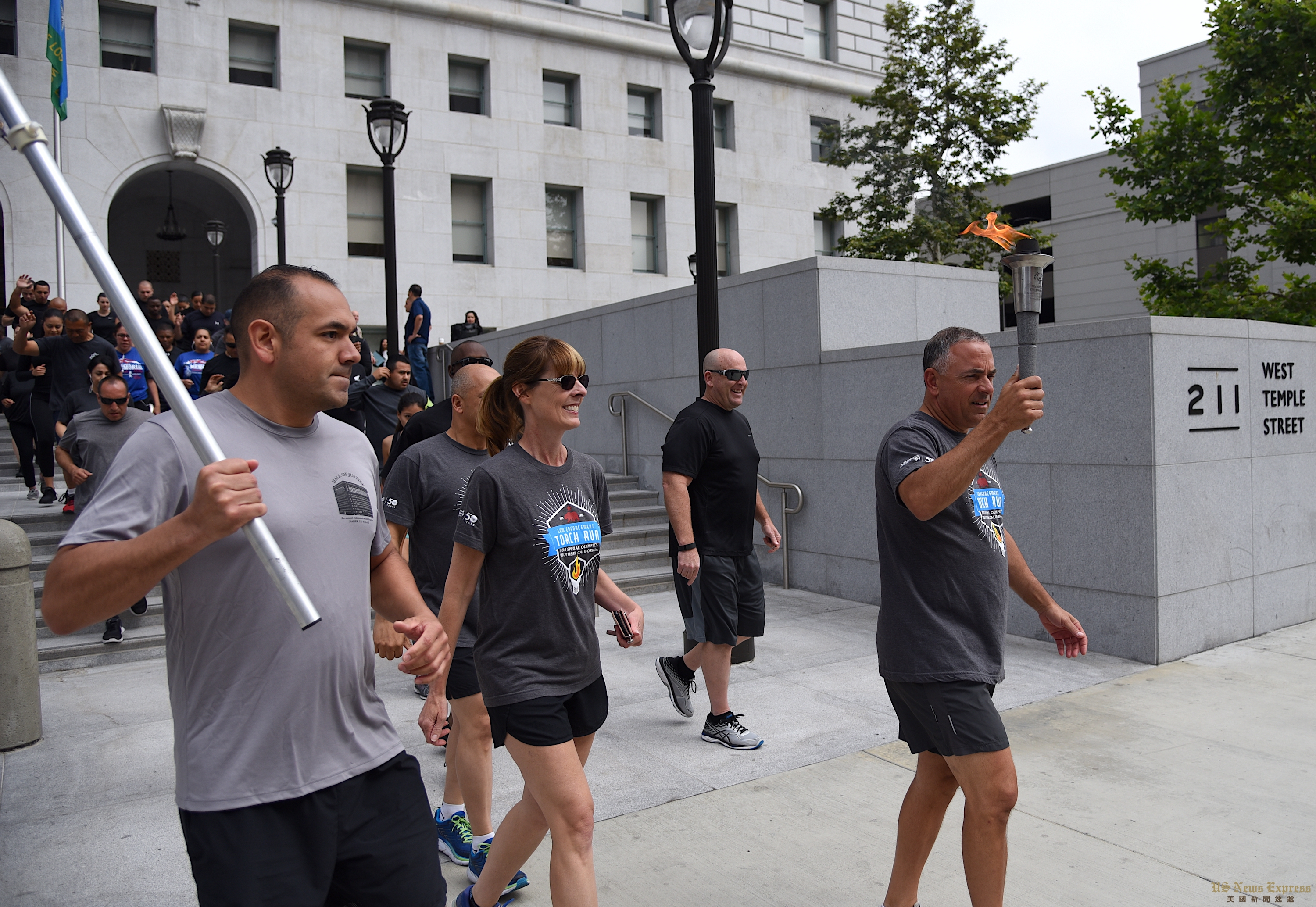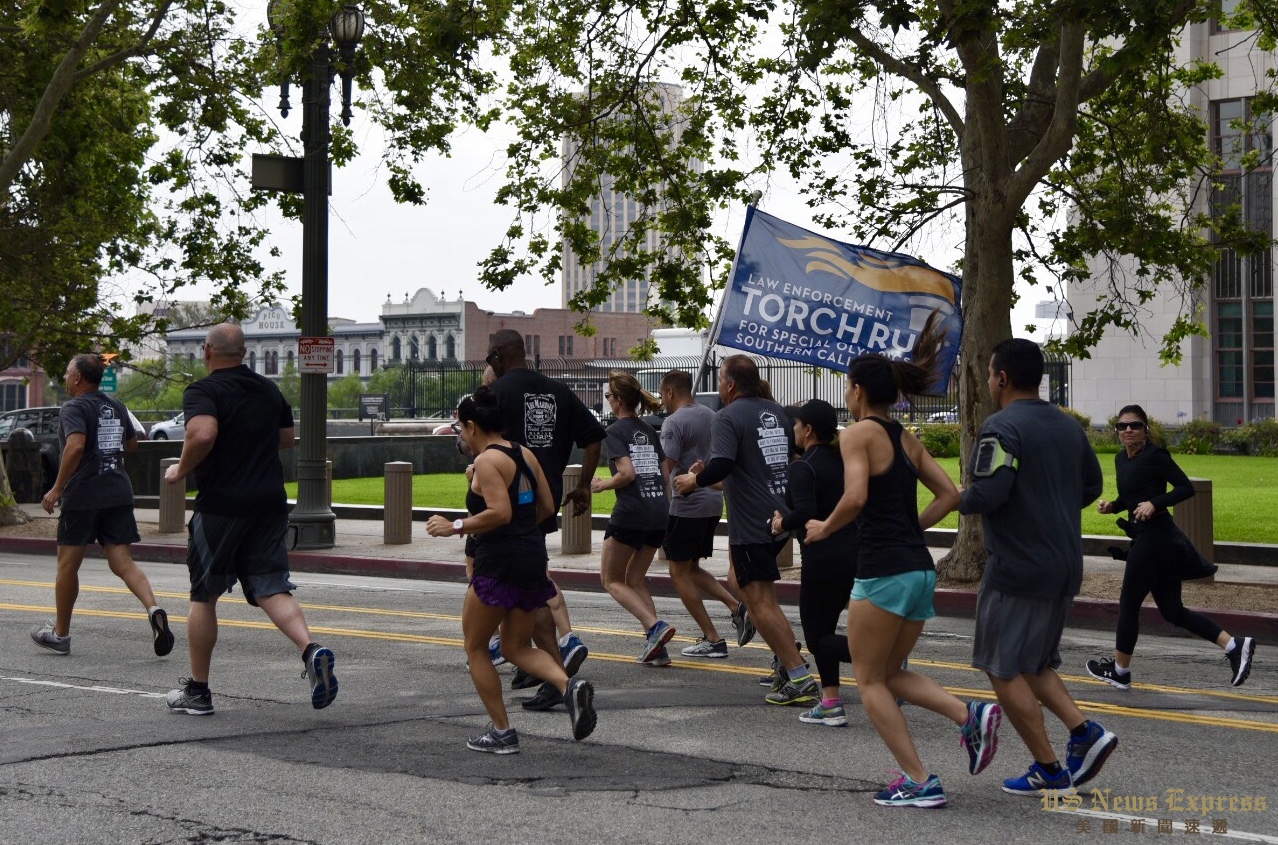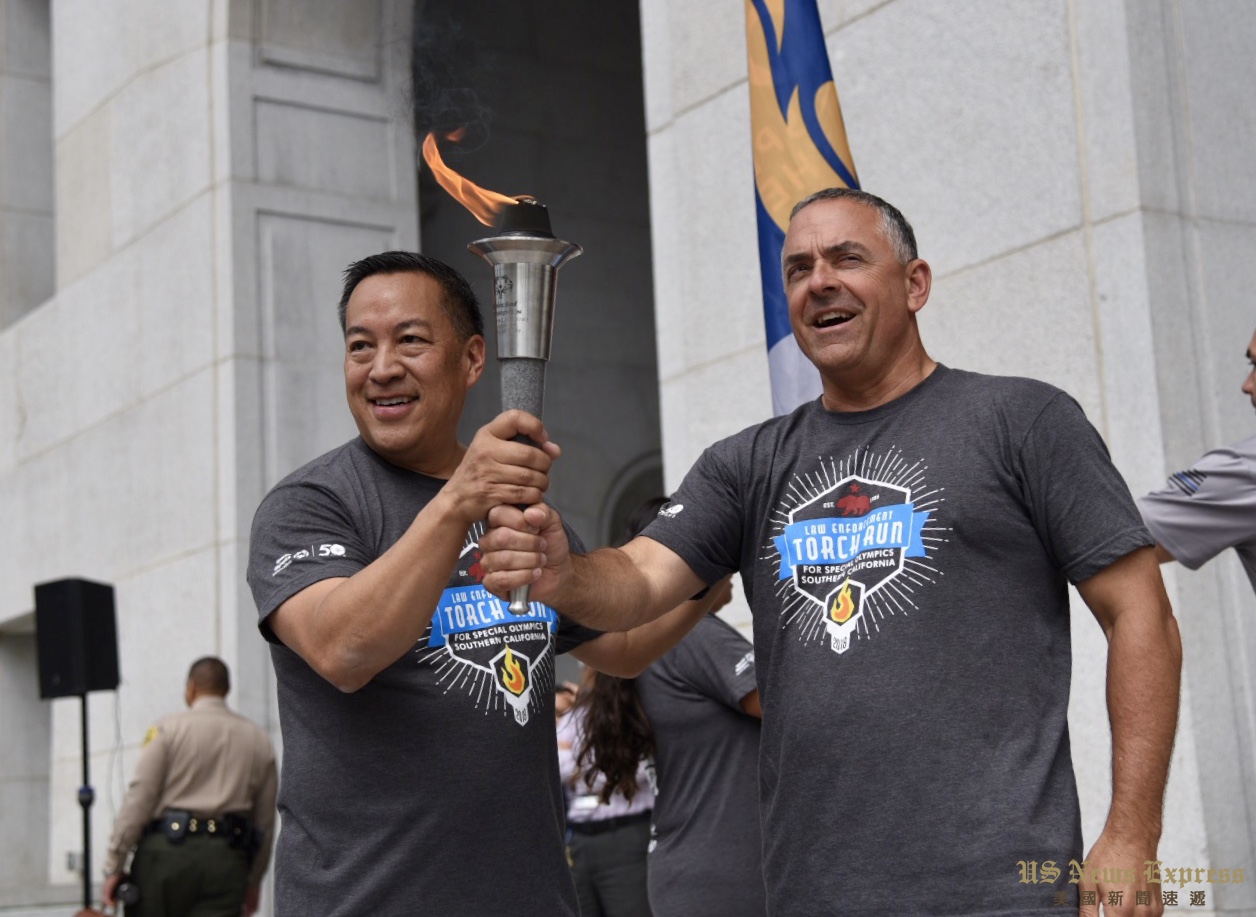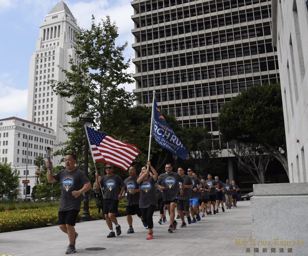 8日清早,南加州夏季特殊奥林匹克运动会的火炬抵达洛杉矶市中心,洛杉矶市警局指挥官周宝来(Blake Chow)带领的警员们从洛杉矶市警局总部出发,一路跑到司法大楼。交接给洛杉矶郡警察局的火炬手后,他们再一路传递至下一站分局,最终火炬将抵达长滩州大。