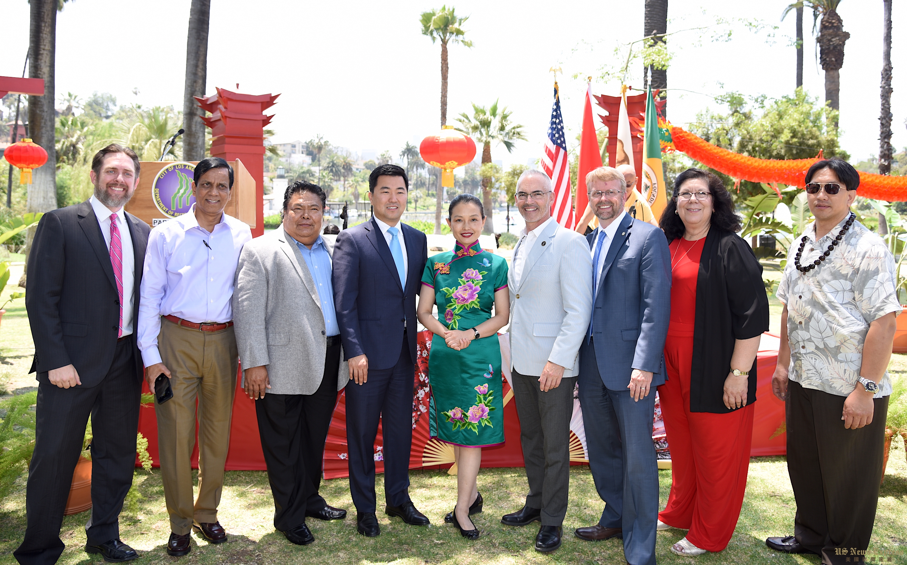 7日中午,洛杉矶康乐及公园管理局的年度荷花节媒体预览在回声公园举行。中国驻洛杉矶总领馆文化领事王瑾,洛杉矶市议员柳大卫(David Ryu)、欧非洛(Mitch O’Farrell)以及管理局经理舒尔(Michael Shull)、荷花节项目负责人艾兰(Laura Island)等都出席了当天的活动。