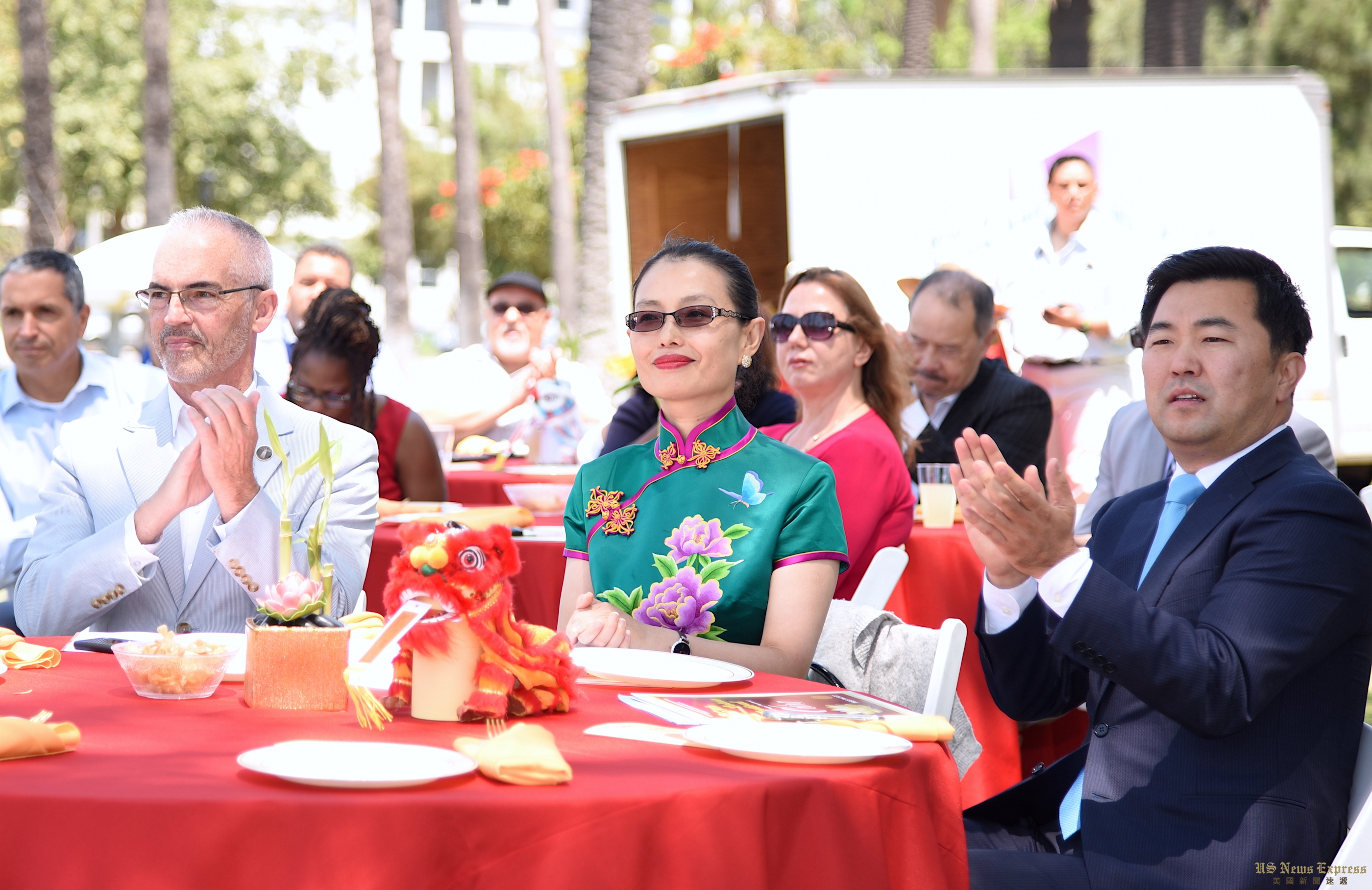 柳大卫和欧非洛作为市议员,每年都组队参加荷花节的龙舟比赛,今年也不例外。回声公园湖所在地是欧非洛的选区,欧菲洛当天表示,“回声公园是洛杉矶的地标,今年我们在这里庆祝中国文化。中国与我们共享一片太平洋,是我们的朋友和邻居,我们将在这里度过一个美好的荷花节周末!”