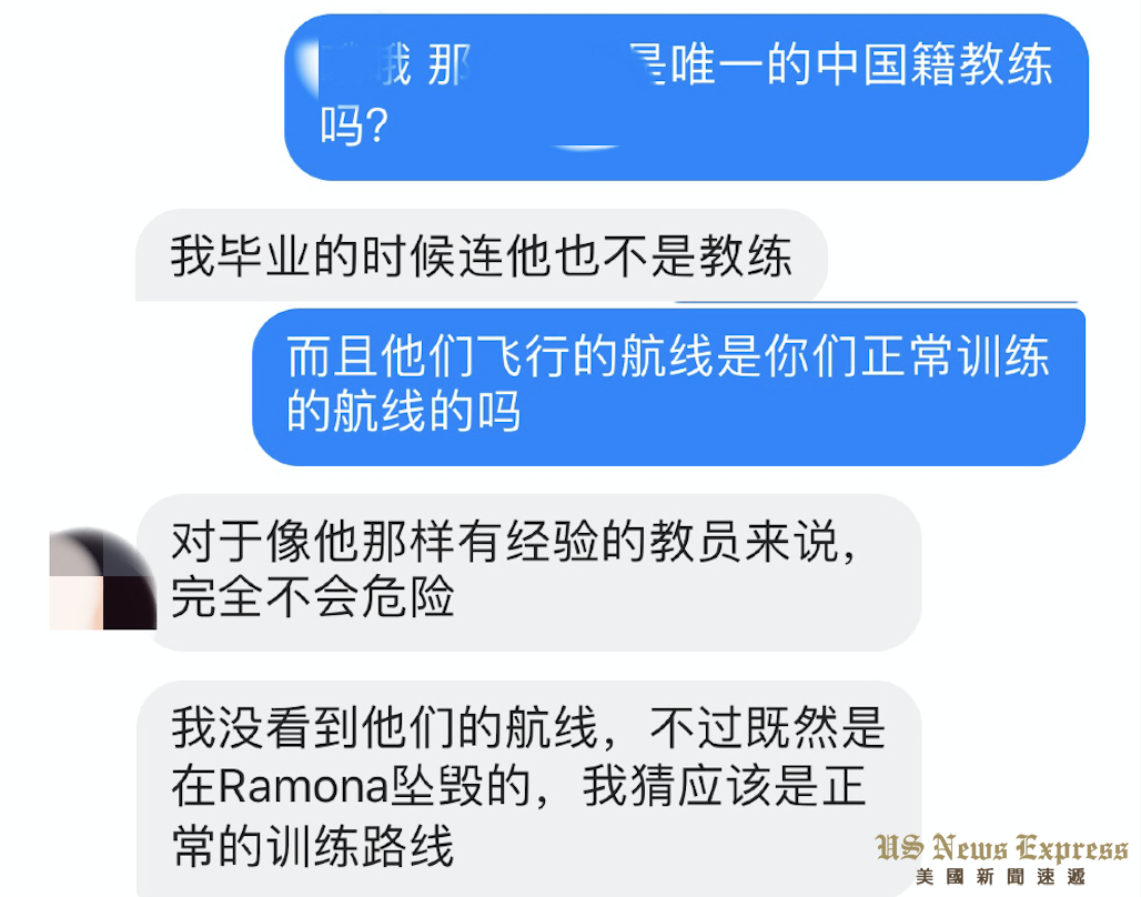 上月发生在南加圣地亚哥的航空学校教练飞机坠毁事件,引起巨大关注。目前美国国家运输安全委员会(NTSB)和美国联邦航空局(FAA)都在对此事进行调查,最终的事故原因分析报告可能最快也要几个月时间才能完成。记者6日晚间联系到该航校的一名已经毕业的学生了解相关情况。