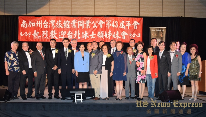 南加州台灣旅館業同業公會第43屆理事與貴賓合影。錢美臻攝