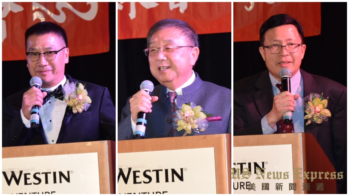 (左起) 北美洲台灣旅館公會聯合總會總會長蔡慶輝、南加州台灣旅館業同業公會會長李德揚、休士頓台灣旅館公會會長葉德雲。錢美臻攝