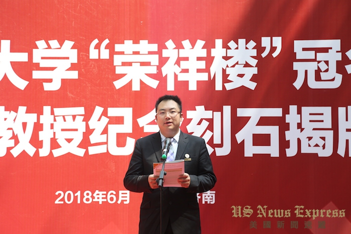 陈子江为揭牌仪式发表了热情洋溢的讲话,她说:“我们今天在这里举行“荣祥楼”冠名暨徐荣祥教授纪念刻石揭牌仪式,以此来纪念这位有仁爱之心、有执着追求精神的杰出的医生和企业家,来推动山东大学与美宝集团的全面合作。”