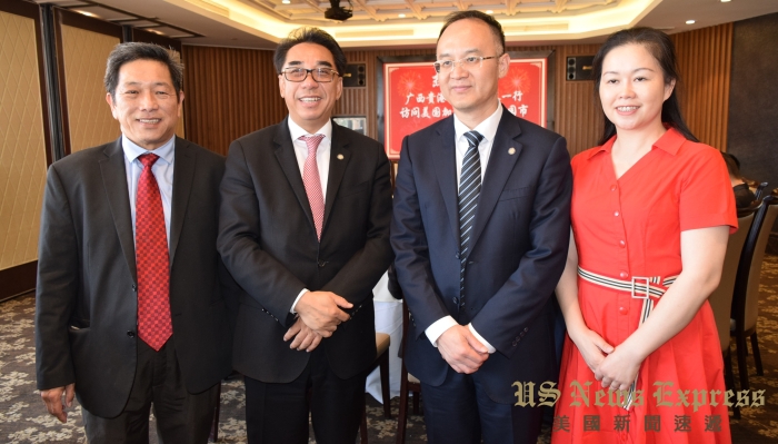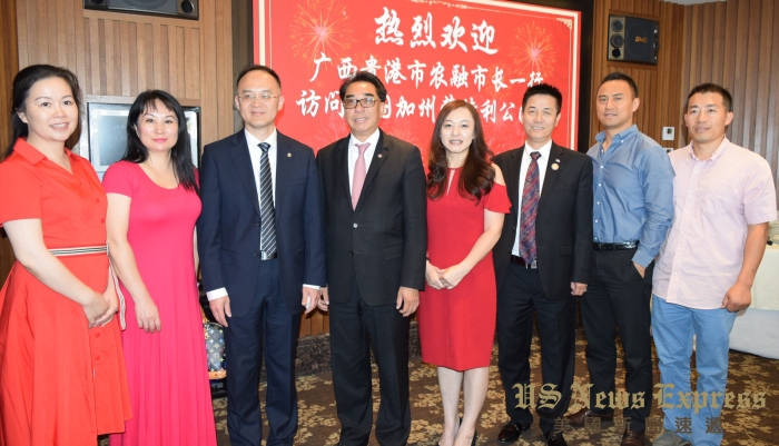 先至墨西哥訪問後轉至田納西考察,在6月21日抵達南加州地區的廣西貴港代表團,在市長農融率領下於上午拜會南加州蒙特利公園市,並與蒙市簽署友好合作協議。午間與此間僑團領袖餐敘,餐後於考察美國量販店通路後,轉赴舊金山繼續此次參訪行程。