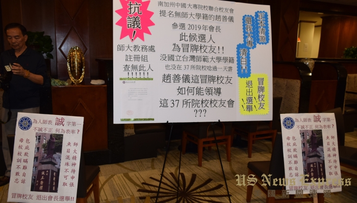 提出質疑的是該會2015年理事長劉中秋,她指出,本屆提名委員會提出「同額競選」的候選人趙善儀,是以師範大學校友會的理事身分參選。但經南加師大校友會創會會長吳黎耀華,返回台灣向母校師大查證趙善儀的學籍資料,經校方註冊組覆函指稱該校79級體育系畢業校友並無「趙善儀」資料。
