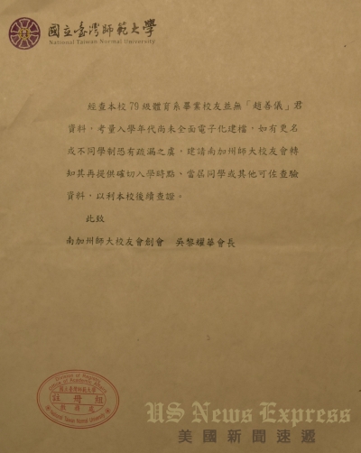 趙善儀過去自稱為79級體育系畢業,為免疏漏,當時師大教務處註冊組對趙善儀學籍的查核,是以她自稱的79級(1990)加上前後兩年共三屆的學籍查核,這公函是2016年11月30日教務處委請2014年的會長曾家良帶回美國給創會會長吳黎耀華。