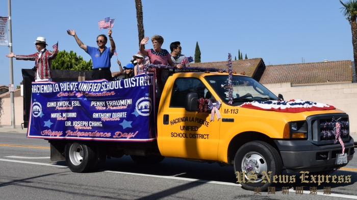 参加的团体从鼓乐队丶老爷车丶花车或游行队伍,无一不是用代表美国的红蓝白来装扮,游行着不时会脱队走到路旁,和街坊邻居握手互道”独立日快乐”(Happy July 4th),或许没有精致的花车和盛大的军乐队,但充满在现场的是社区居民对国家打从心底的热情展现。