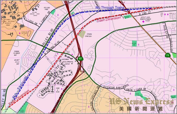 位於洛杉矶圣盖博谷东区的波莫纳市(Pomona),紧邻波莫纳加州州立理工大学(Cal Poly Pomona)的货运火车线路,於7月5日正式宣告停用。这代表该地区繁忙路段之一波莫纳大道(Pomona Boulevard)和天普街(Temple Avenue)的十字路口,将不在会因为要等火车通行而大塞车。