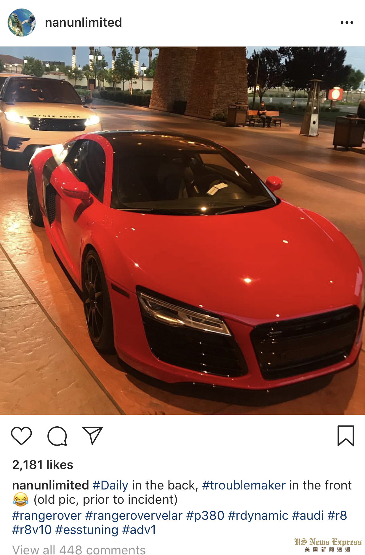 根据拍摄视频人的介绍,黑衣男子先脚踢亚裔男的超级跑车,才引发这起事故。拍摄者边拍边表示“你应该尊重男人的车,不能随便踢它们。” 随后警察到场解决案件,两人都未提起指控。